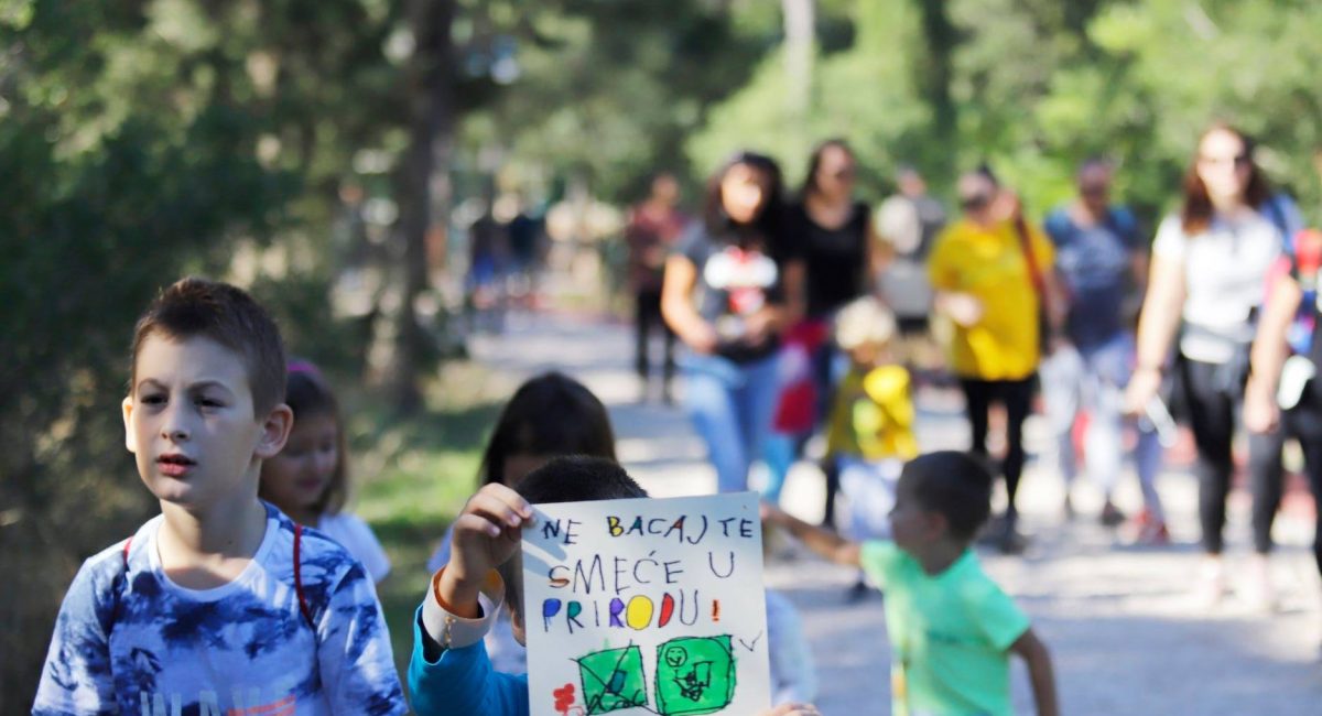 “Trash does not belong in nature” was just one of the messages children from the workshop left on trees in the park, hoping to inspire those who would walk the forest trails after them. The workshop was organized by members of the mountaineering and environmental group Stribor.