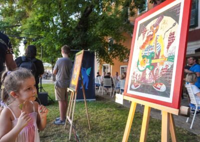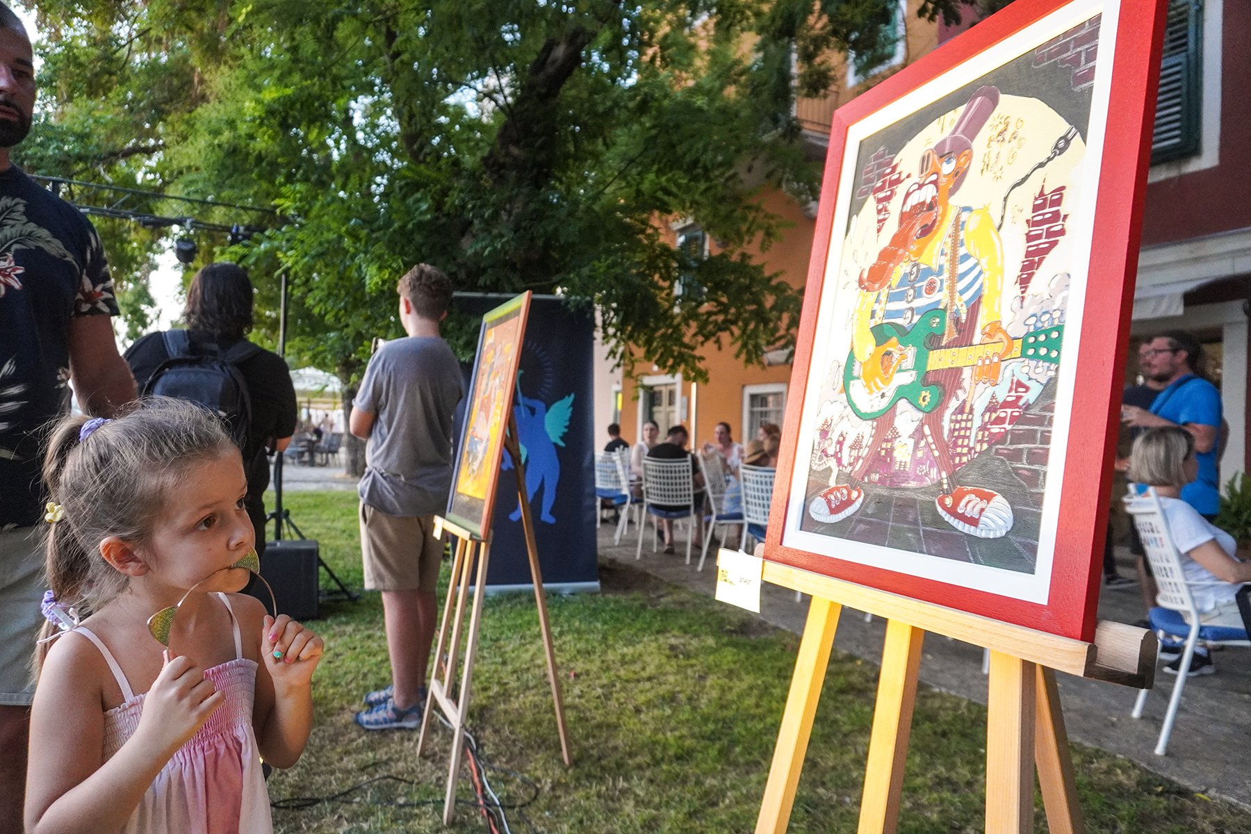 “Tonight we opened a special exhibition for the city of Šibenik and Club Azimut, as part of the International Children’s Festival (MDF). This is an exhibition by Davor Gobac, who, besides being a wild rocker, is equally wild in his visual art practice, so I’ve been waiting for the day we could bring his exhibition to Šibenik. In many ways, this exhibition belongs to the world of MDF and closely resembles the world of children’s imagination that Šibenik is currently immersed in. His paintings can only be described as — Davor Gobac. The way he is, that’s exactly how his paintings are,” said Branka Grubić, head of the visual arts department of Kolektiva 4B.